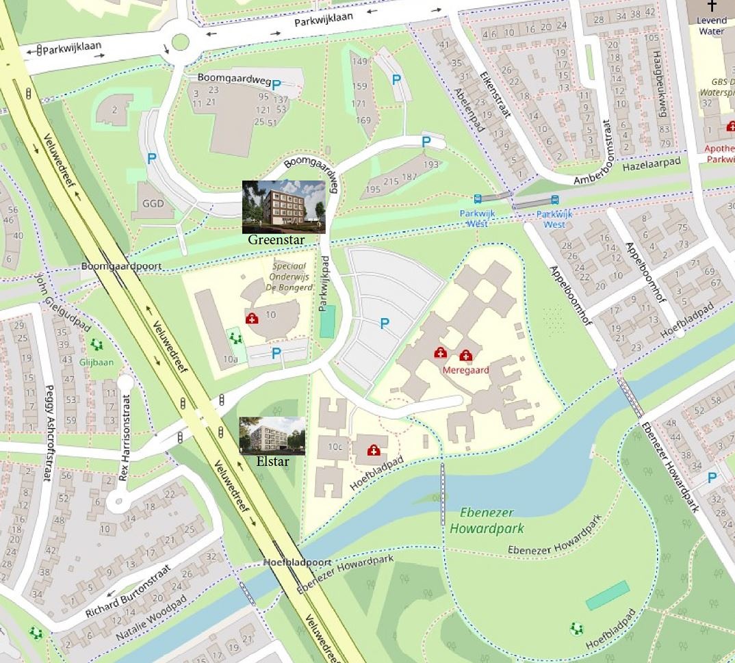 In opdracht van GoedeStede bouwt aannemer Trebbe 2 woongebouwen (Greenstar en Elstar) aan de Boomgaardweg in Almere Parkwijk. Beide appartementencomplexen bieden plaats aan 36 sociale huurwoningen verdeelt in studio’s en 2-kamerappartementen.