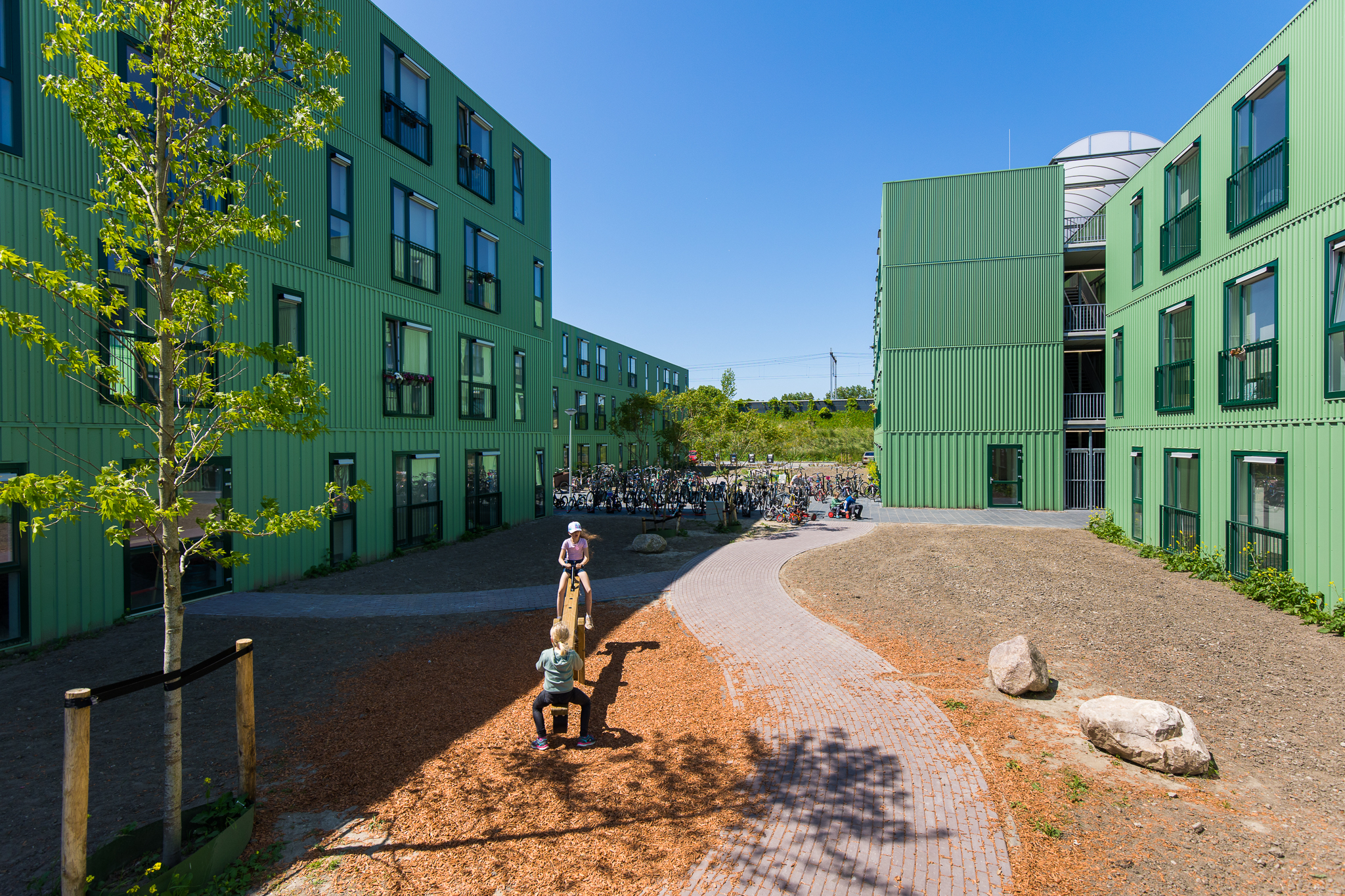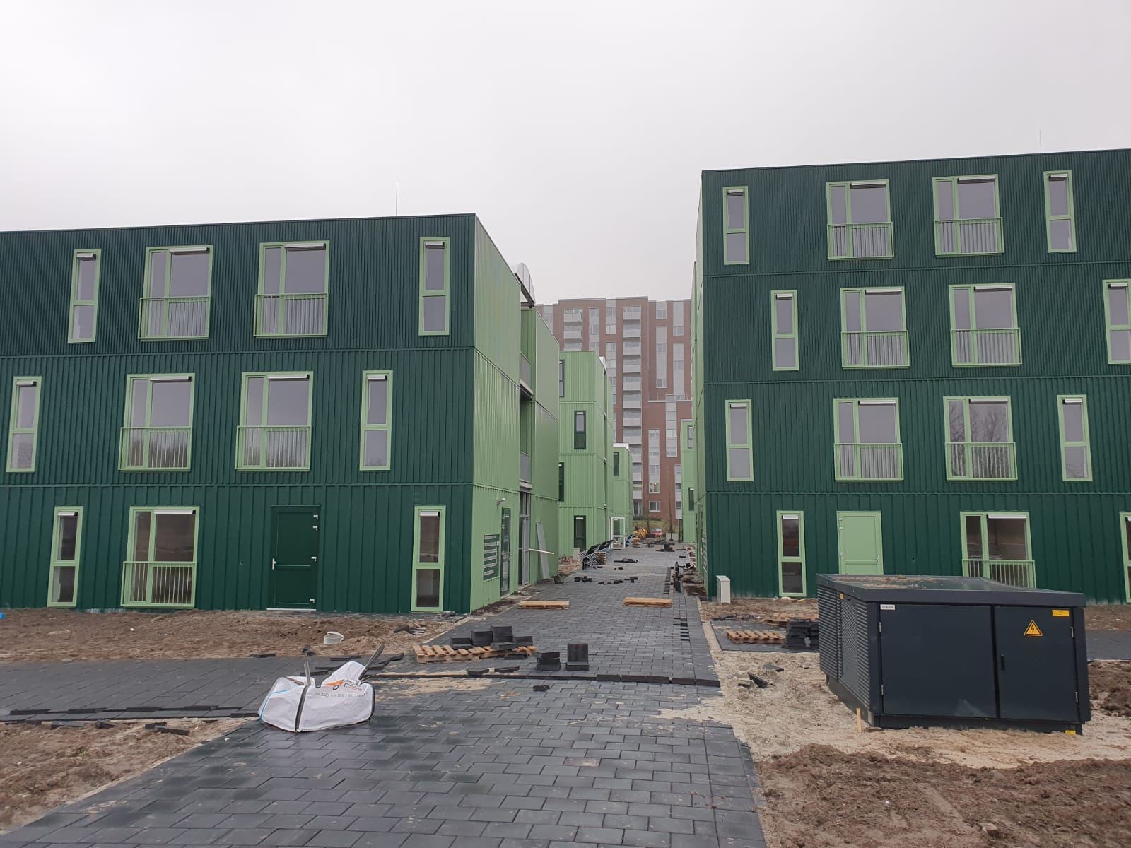 In een half jaar tijd zijn de woonunits geplaatst en samengesteld tot woongebouwen. De gemeente heeft de buitenruimte ingericht. In maart 2023 zijn de eerste woningen opgeleverd.