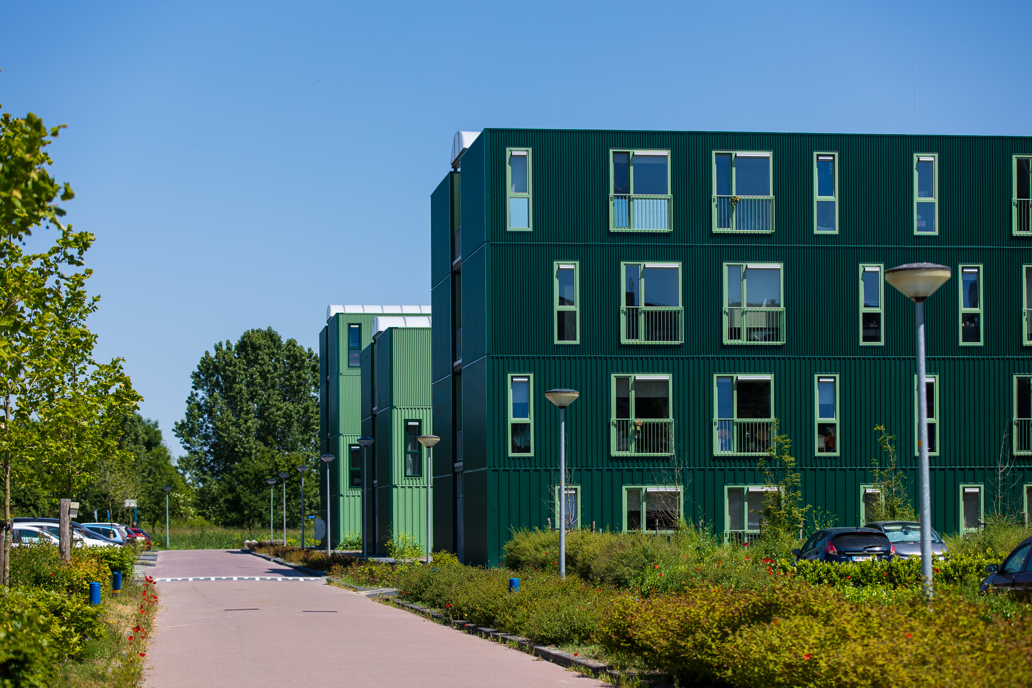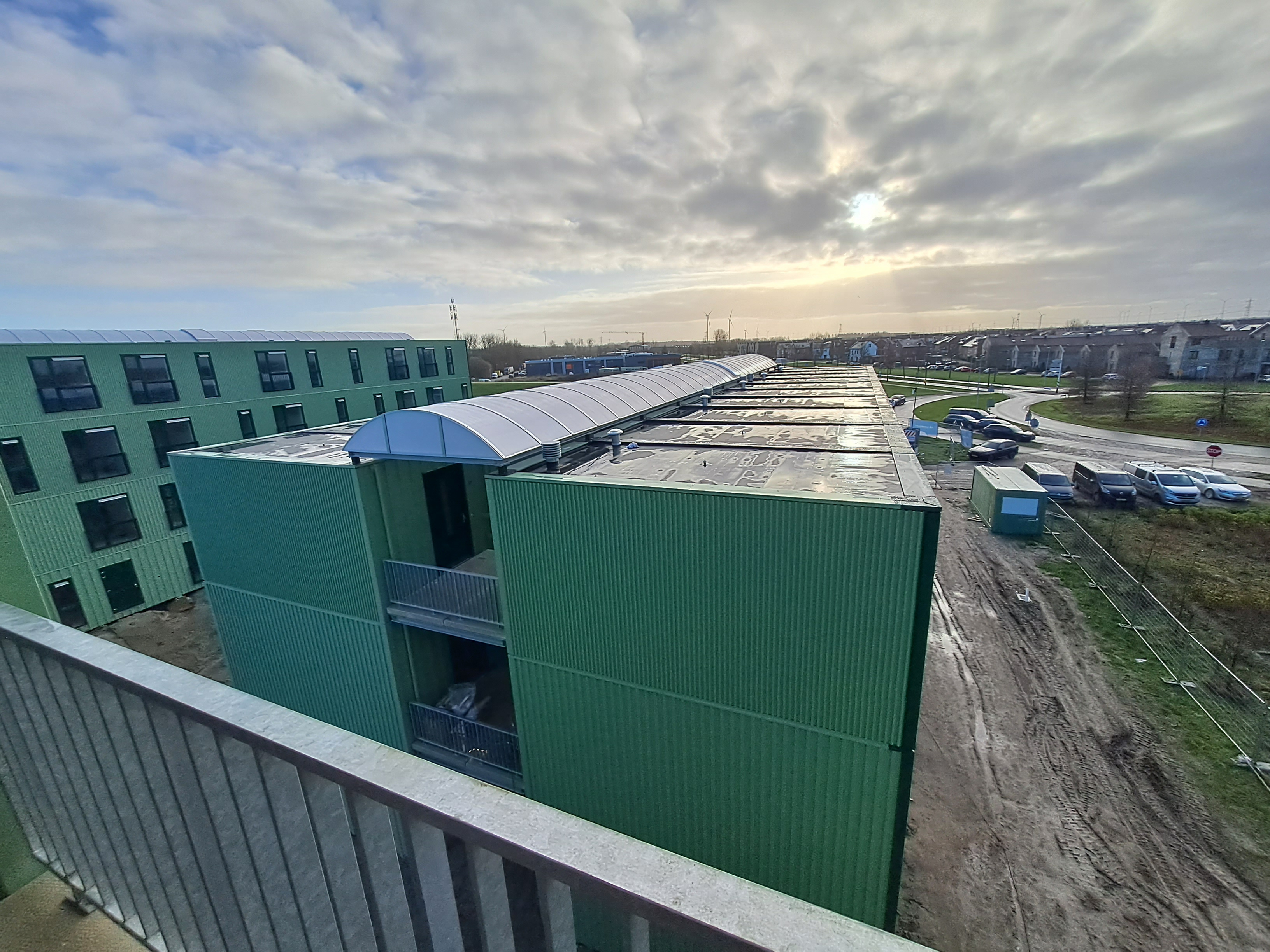 De kavel ligt naast ons appartementencomplex Madrona. Het plan voor tijdelijke woningen is in een zeer korte tijd door woningcorporatie de Alliantie en GoedeStede ontwikkeld op verzoek van de gemeente Almere.